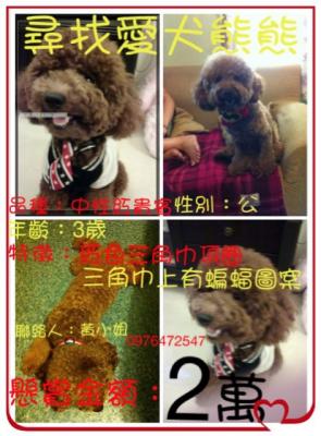 說明: 曾有人在民森路和中正路看過牠,也得知有人看到牠從青年路穿越中山路往崛江方向跑,牠出現地點好像都位於市區,請各位幫幫忙留意一下..假使有人在市區看到牠,拜託您麻煩請把牠攔下與我聯絡,我也會表達我的謝意給予您2萬元整作為懸賞獎金。謝謝。