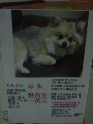 走失地點:台中市北區進化路623號(宏總大地)往外衝跑不見了 |