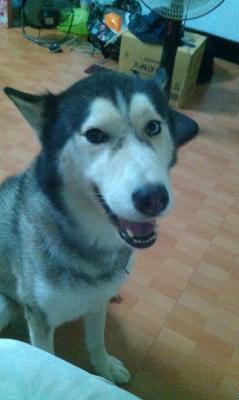 特徵: 哈士奇 脖子有待一條鐵鍊子 灰白色